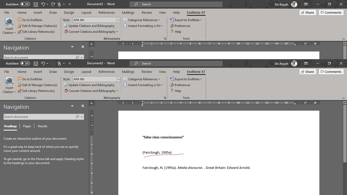 Hi, I am using endnote 8 and office 365. It worked well before. Now, it isnt citing properly. I have tried unistalled/reinstalled both applications and the same problem persists. Attached is how it looks like. Anyone knows how to fix this? Thanks.