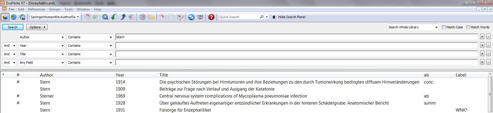 I am also using Windows 7. The attached screenshot EN1 shows the top of the screen immediately before hitting ‘search’ for the first time; as there is no response, the screen looks the same after this first attempt. Screenshot EN2 shows the same area after hitting ‘search’ a second time, with the greyed out ‘new reference’ icon. I am searching a local library (the same result occurs with any of several local libraries; if two libraries are open, the icon is greyed out in both after a search)