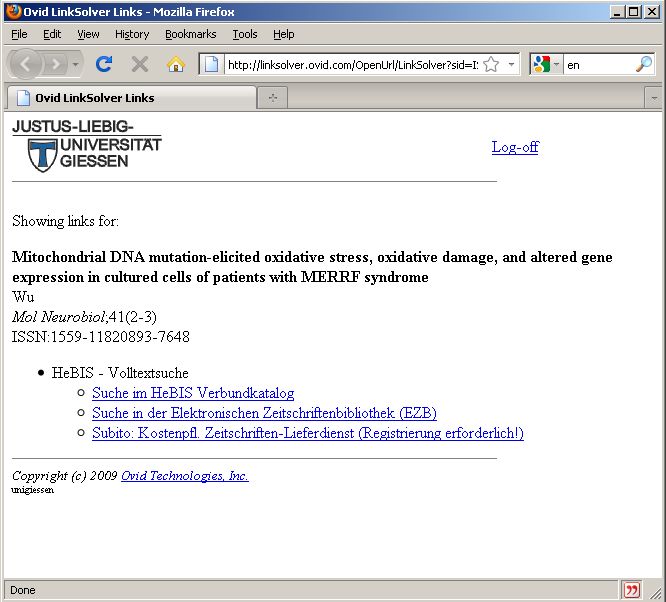 Many students want to access the full text of the imported references. We use the linksolver from Ovid to manage the electronic serial holdings of our library. So our students and scientists insert the URL of the linksolver in the appropiate box in the preferences menu.